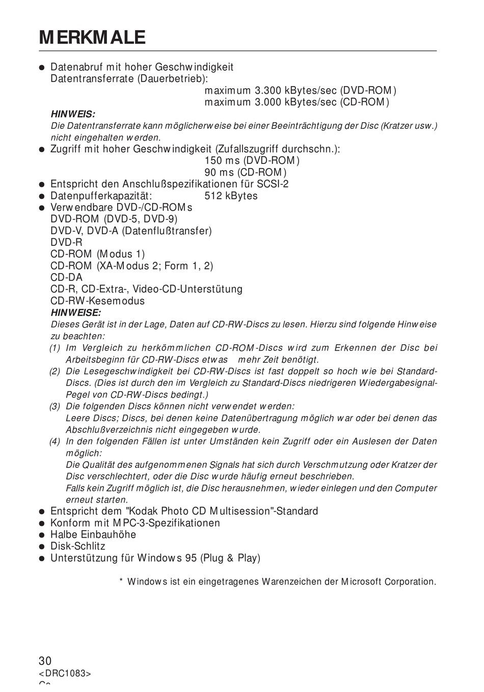 (2) Die Lesegeschwindigkeit bei CD-RW-Discs ist fast doppelt so hoch wie bei Standard-