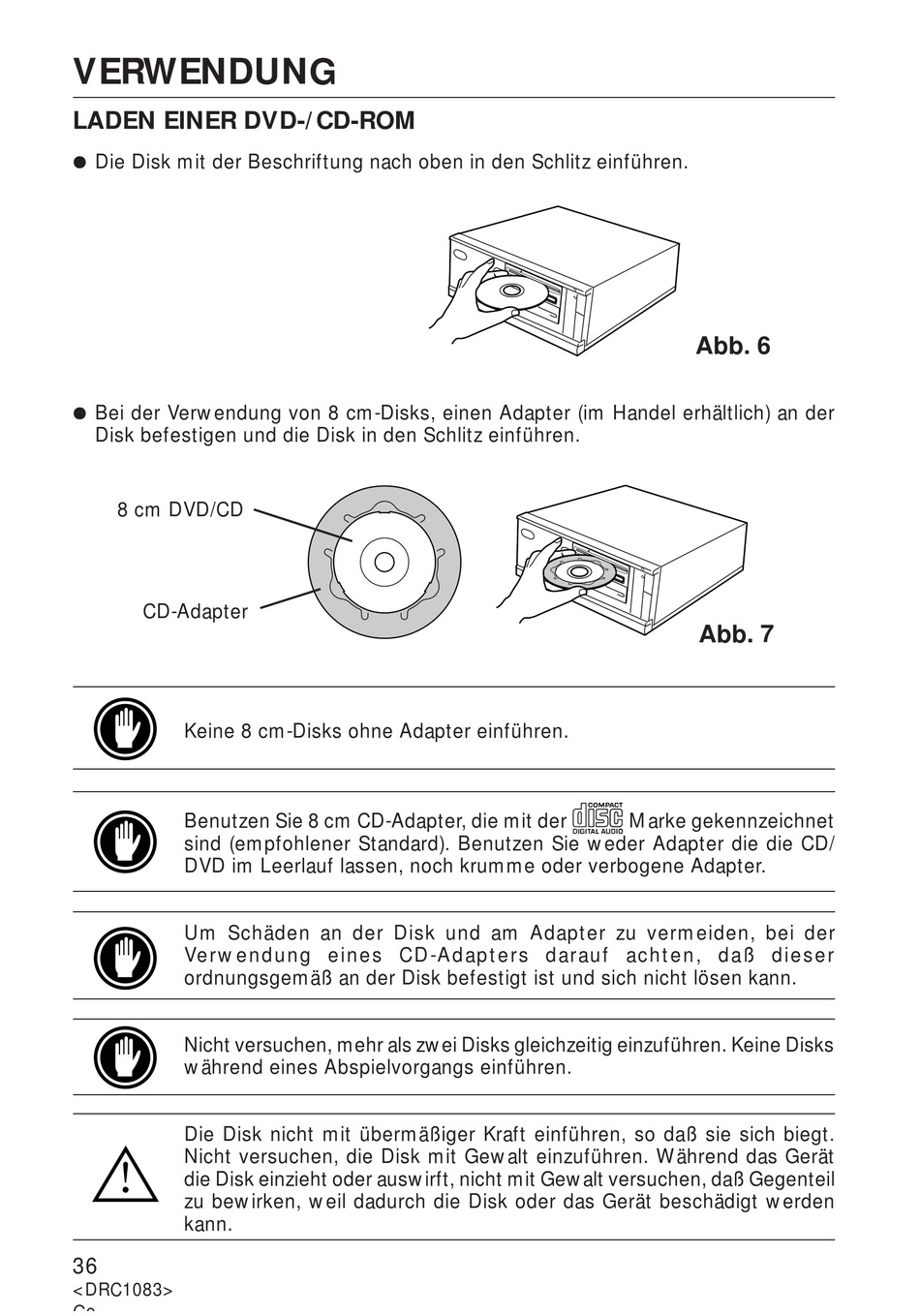 Keine 8 cm-Disks ohne Adapter einführen.