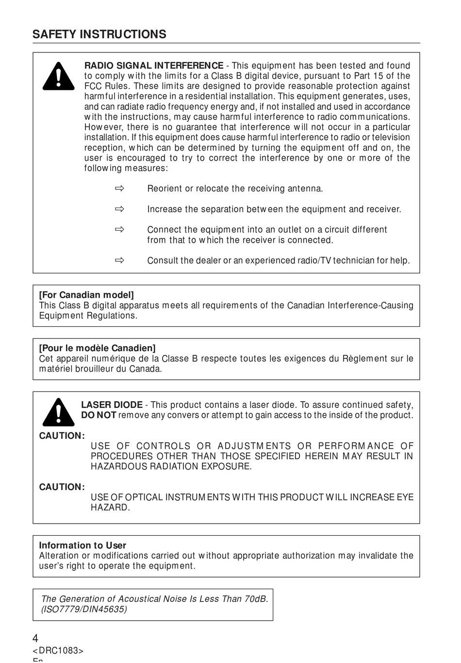 LASER DIODE - This product contains a laser diode. To assure continued safety,