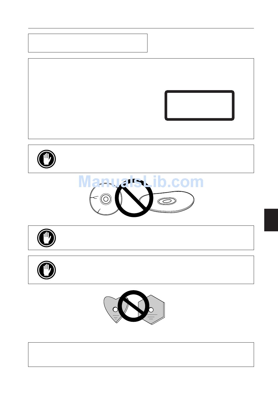 NON riprodurre compact disc di forme diverse da quella circolare