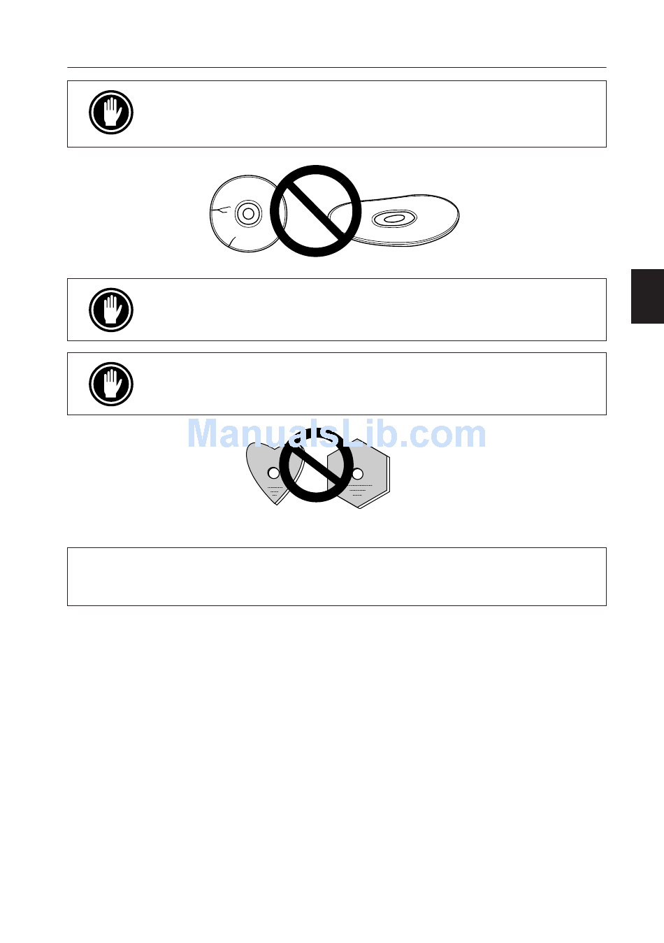 the unit, they may damage the optics. Discs rotate at high speed in-