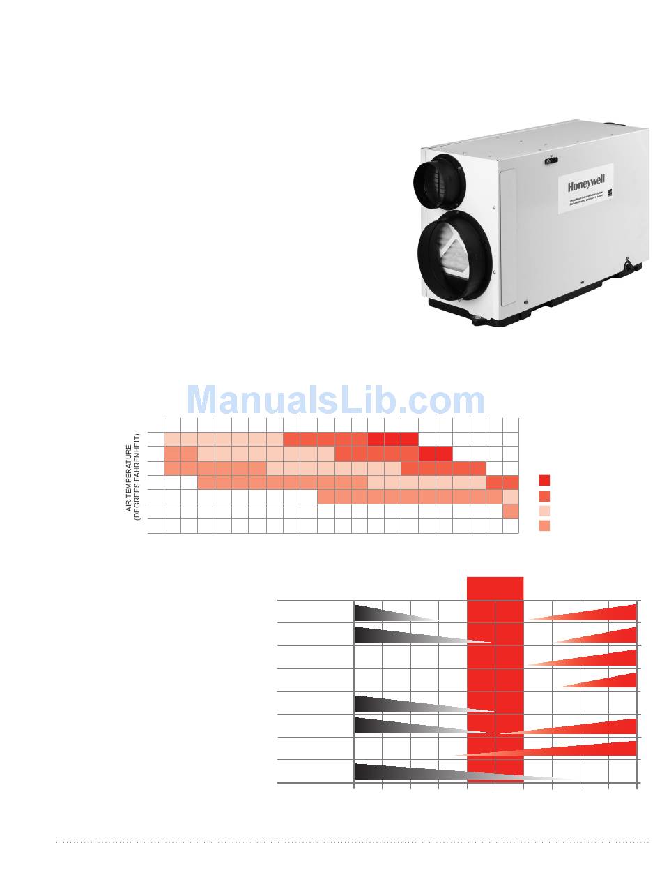 • Removes up to 90 pints of water per day from the indoor air.