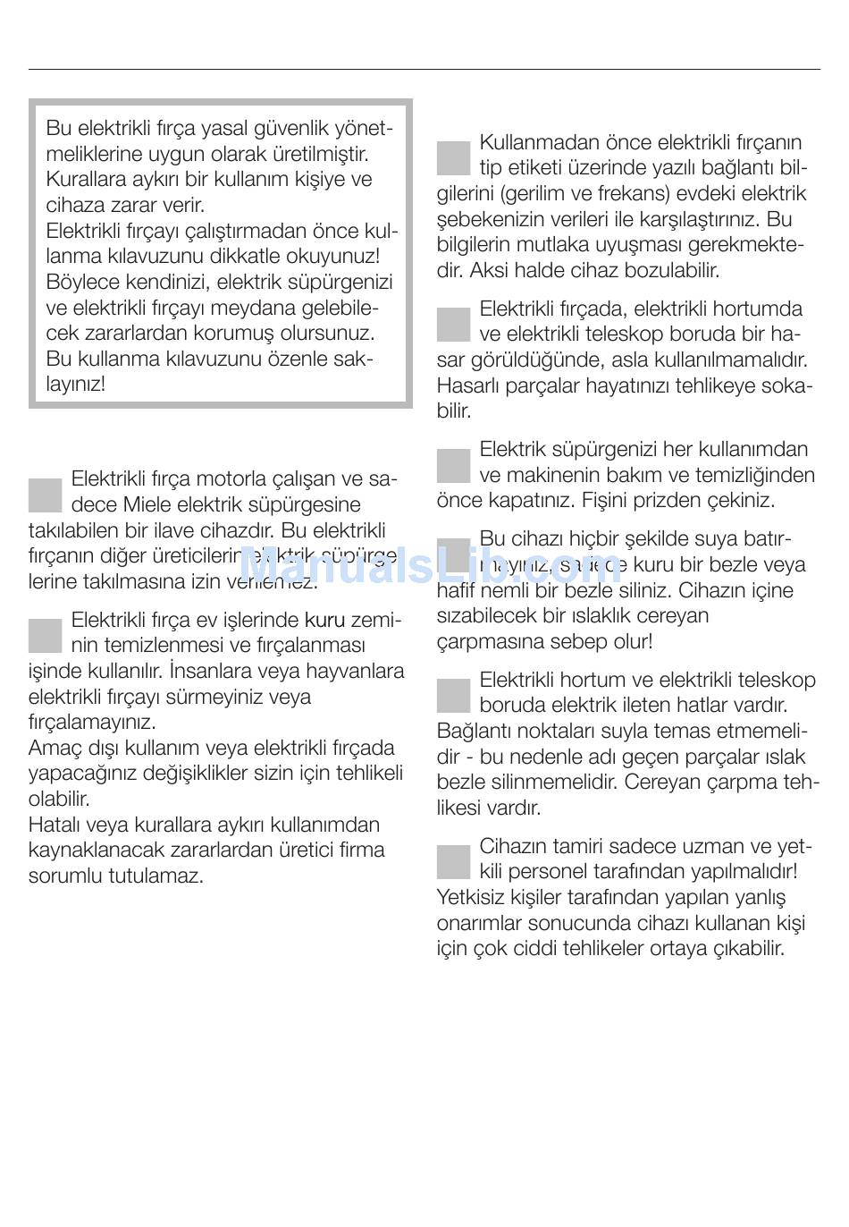 Güvenlik Tavsiyeleri Ve Uyarılar - Miele Seb 236 Operating Instructions Manual