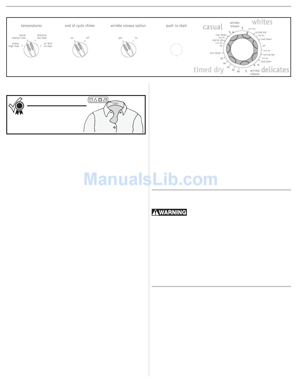 used only in the Timed Dry cycle. Air fl uff-no heat setting