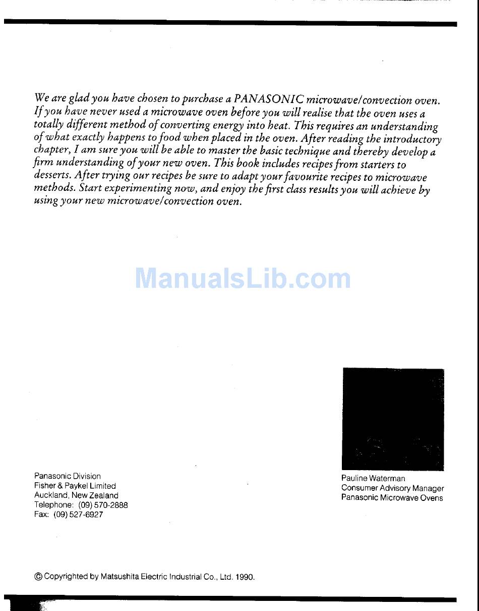 Microwave Oven Panasonic Dimension 4 Cookbook