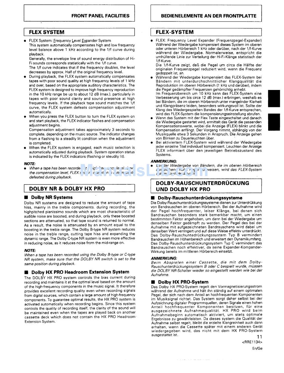Flex System; Dolby Nr And Dolby Hx Pro - Pioneer Ct-W505R Operating Instructions Manual
