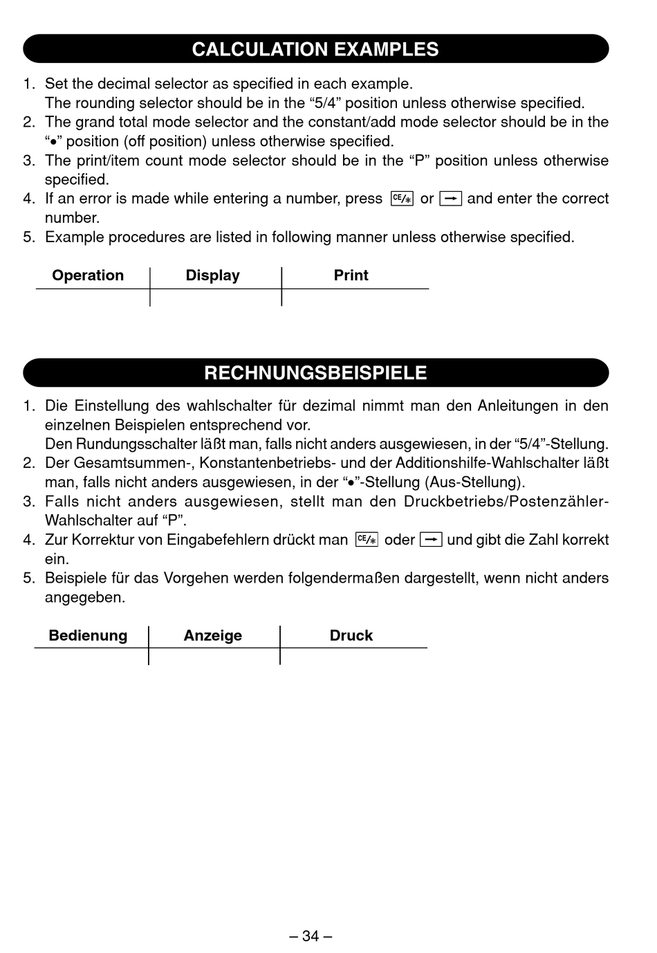 Den Rundungsschalter läßt man, falls nicht anders ausgewiesen, in der "5/4"-Stellung.