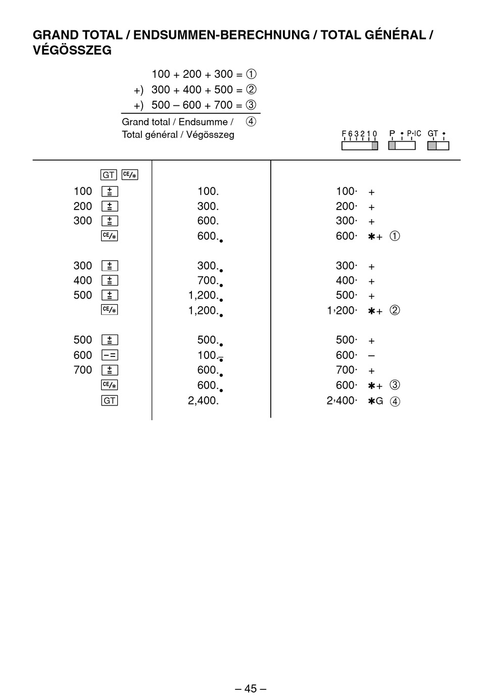 GRAND TOTAL / ENDSUMMEN-BERECHNUNG / TOTAL GÉNÉRAL /
