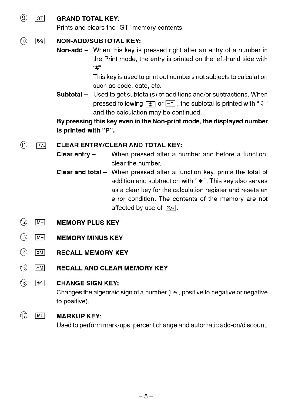 Non-add – When this key is pressed right after an entry of a number in