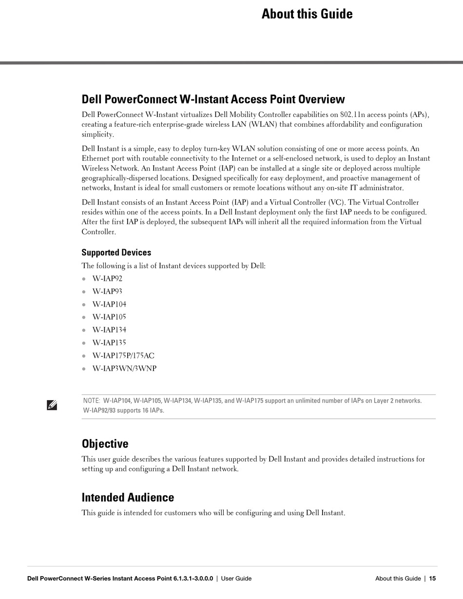 This user guide describes the various features supported by Dell Instant and provides detailed instructions for
