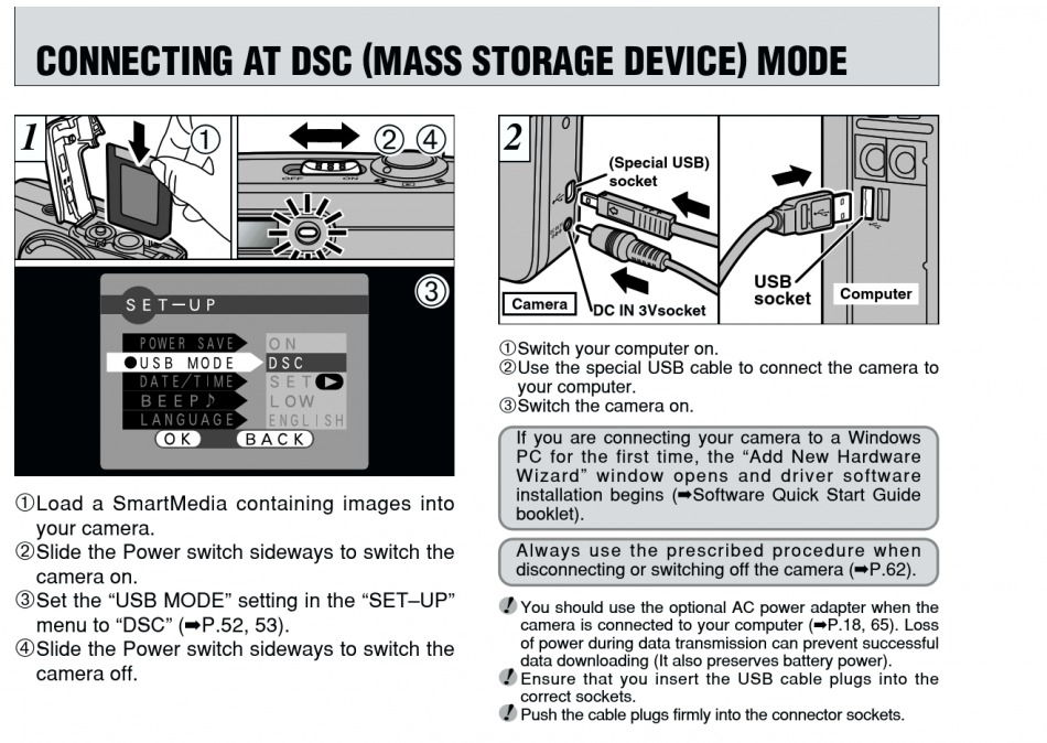 CONNECTING AT DSC ( MASS STORAGE DEVICE ) MODE