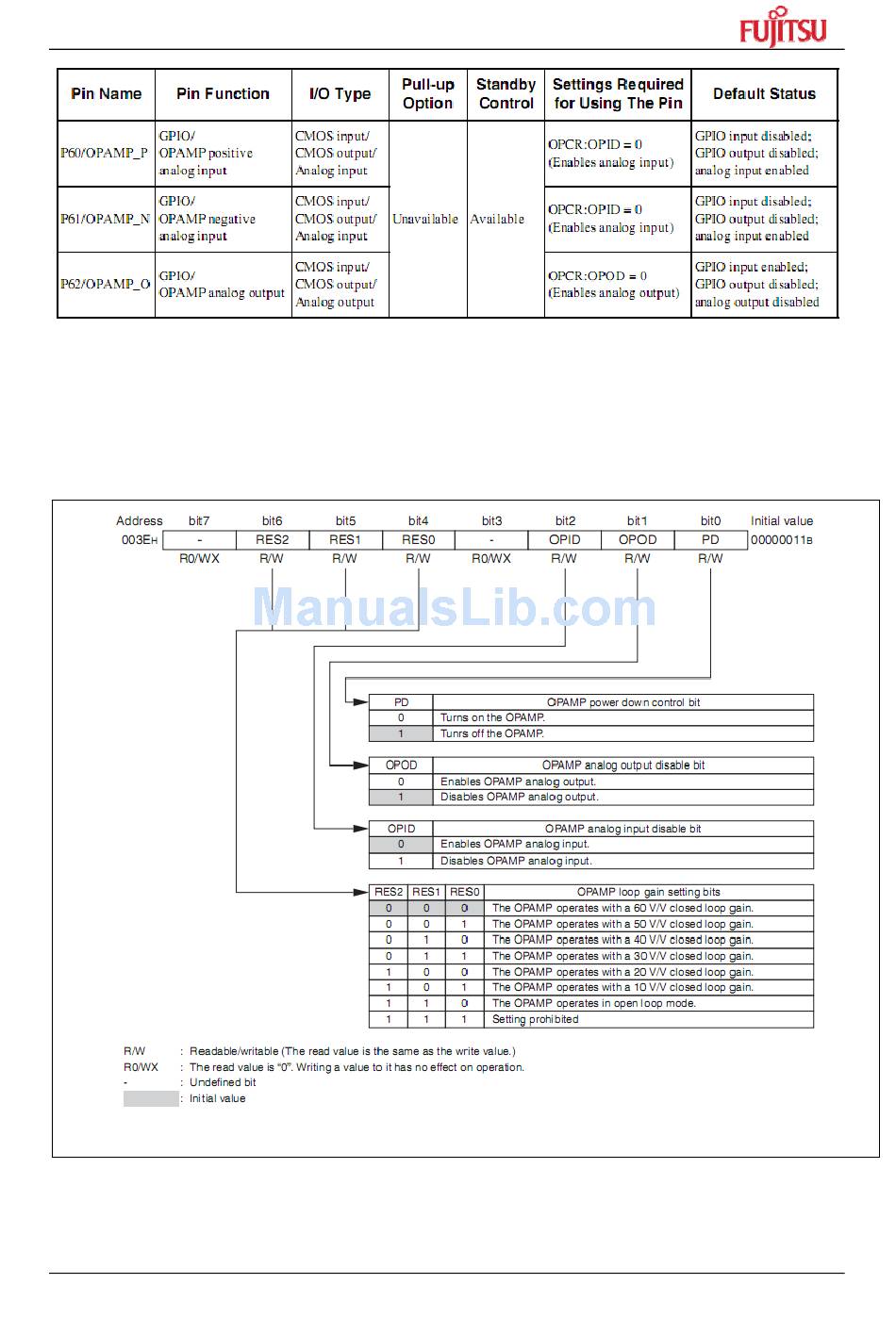The OPAMP control register (OPCR) is used to turn on and off the OPAMP, to enable and