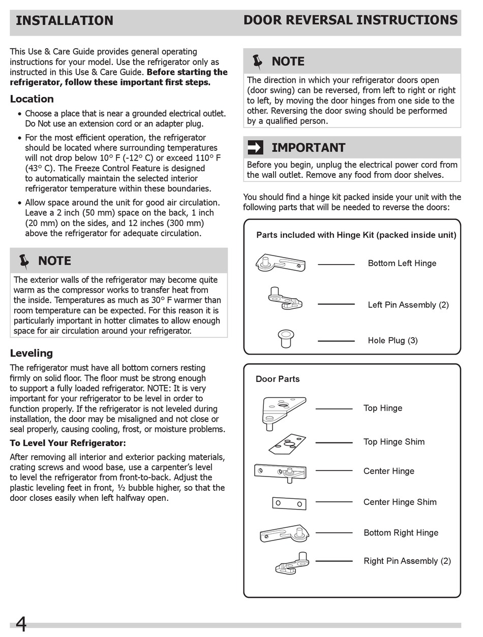 function properly. If the refrigerator is not leveled during