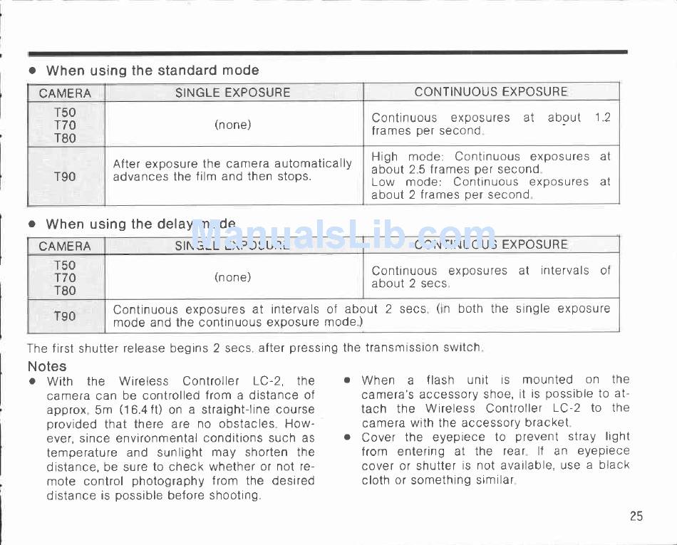 When Using The Standard Mode; When Using The Display Mode - Canon Lc-2 Instructions Manual