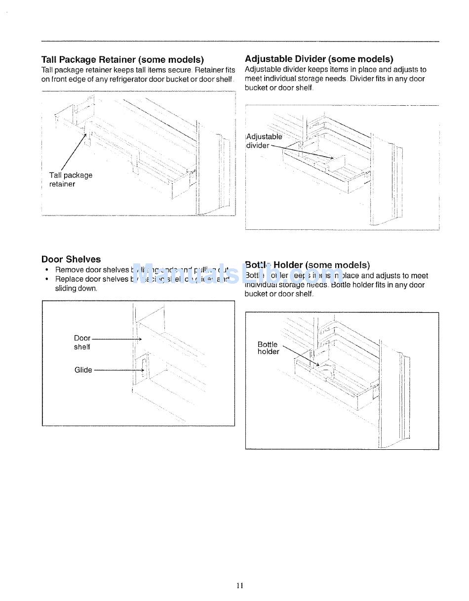 Replace door shelves by placing shelf on glides and