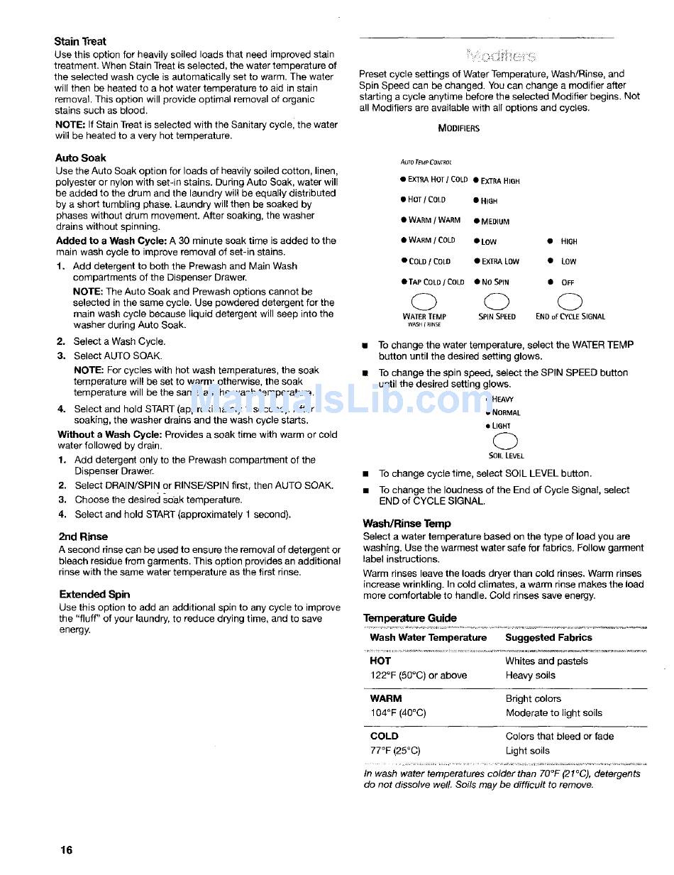 NOTE: For cycles with hot wash temperatures, the soak