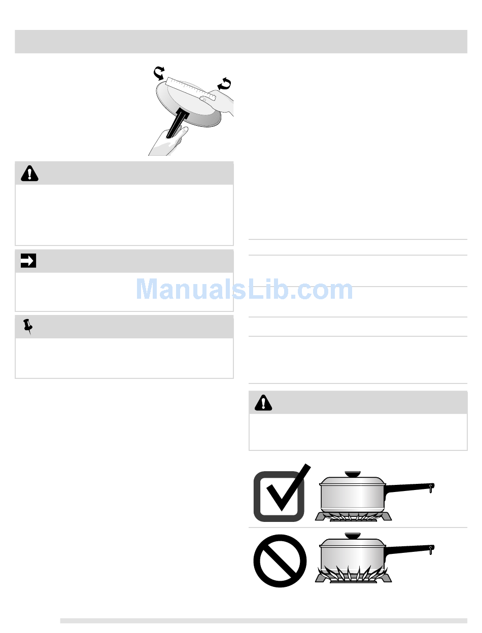 flame size for various types of cooking (Fig. 2)