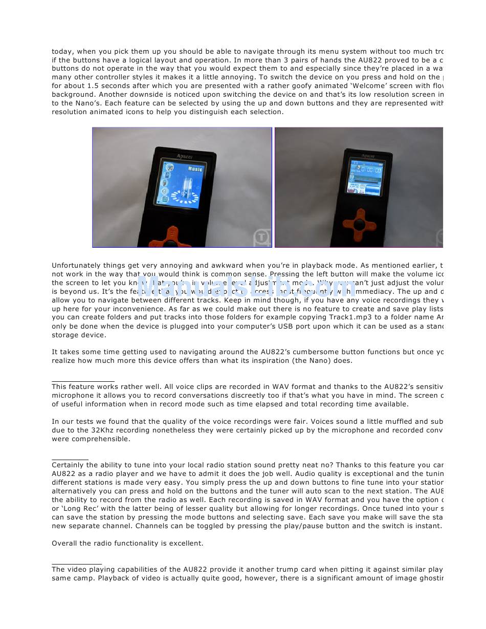 Voice Recording; Fm Radio; Video Player - Apacer Technology Audio Steno Au822 Review