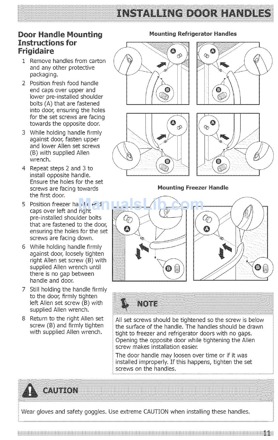Wear gloves and safety goggles, Use extreme CAUTIONwhen installing these handles,