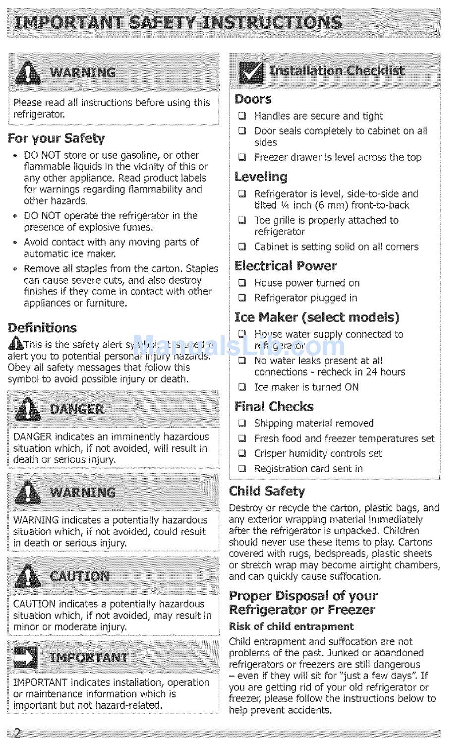 DO NOT operate the refrigerator