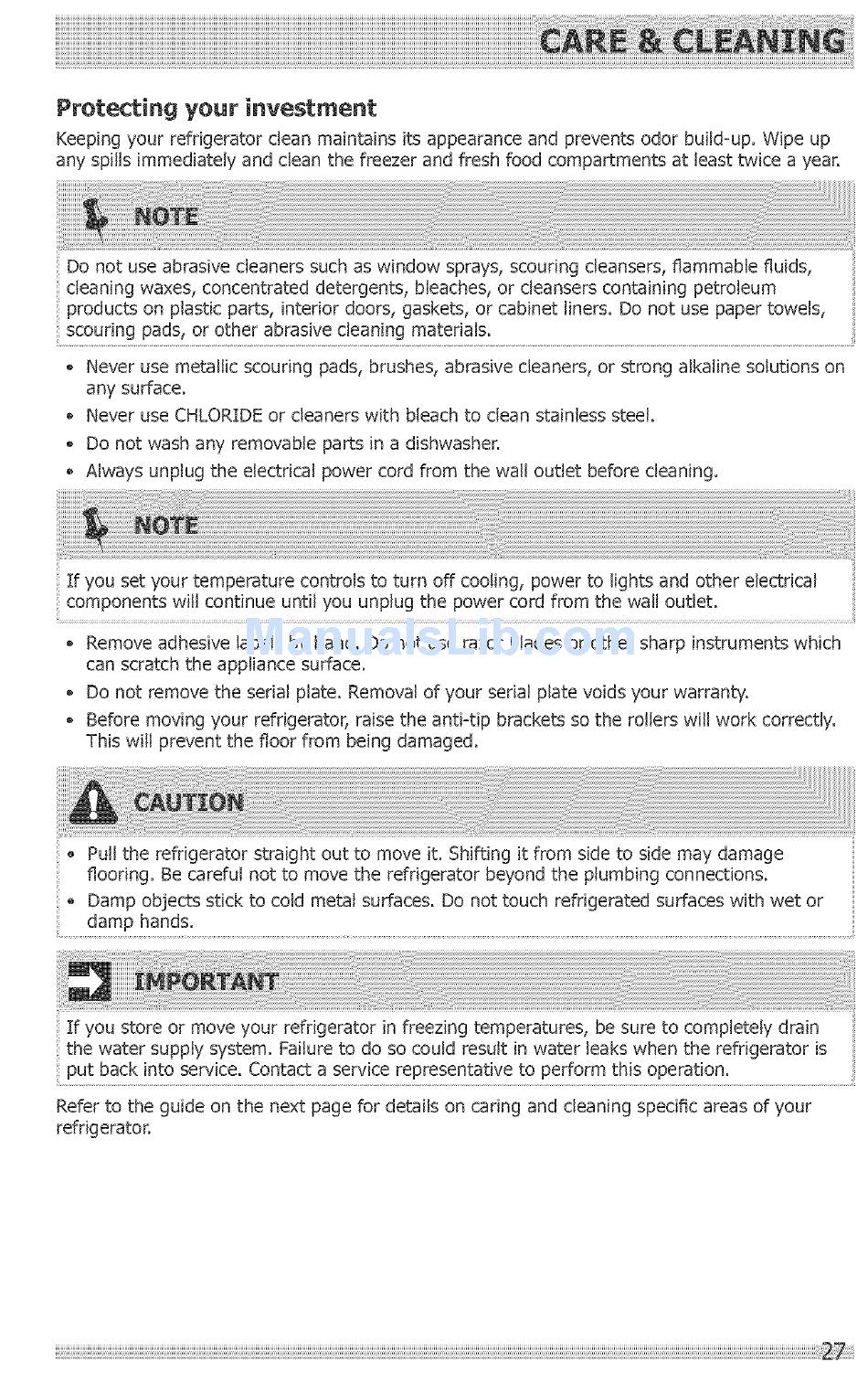flooring. Be careful not to move the refrigerator
