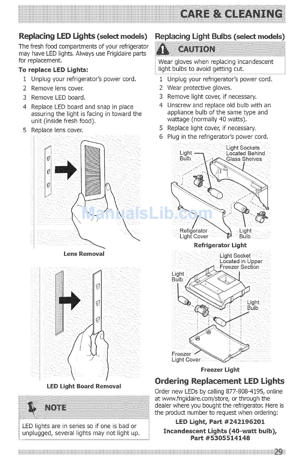may have LED lights. Always use Frigidaire parts