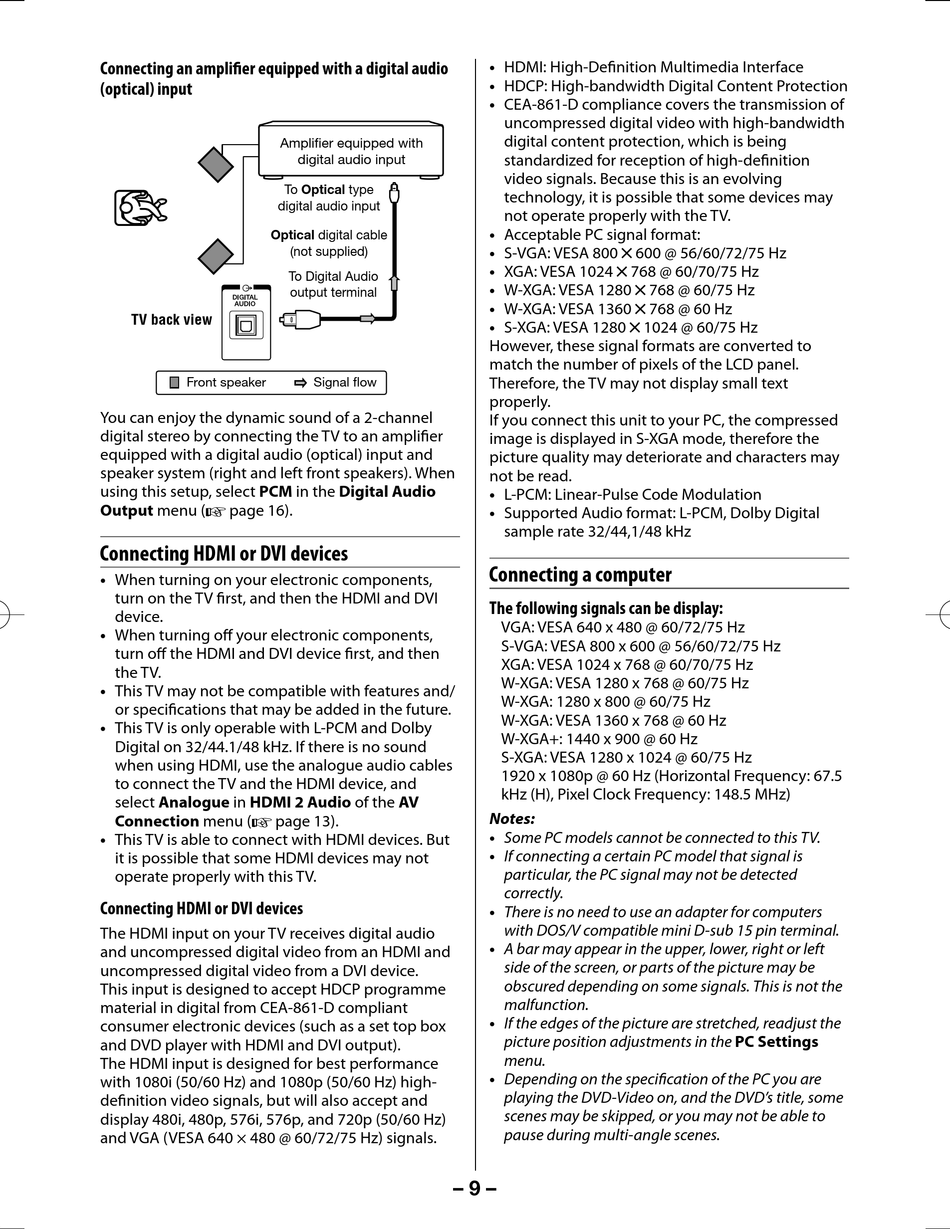 digital stereo by connecting the TV to an amplifi er