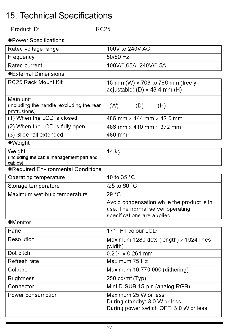 15. Technical Specifications