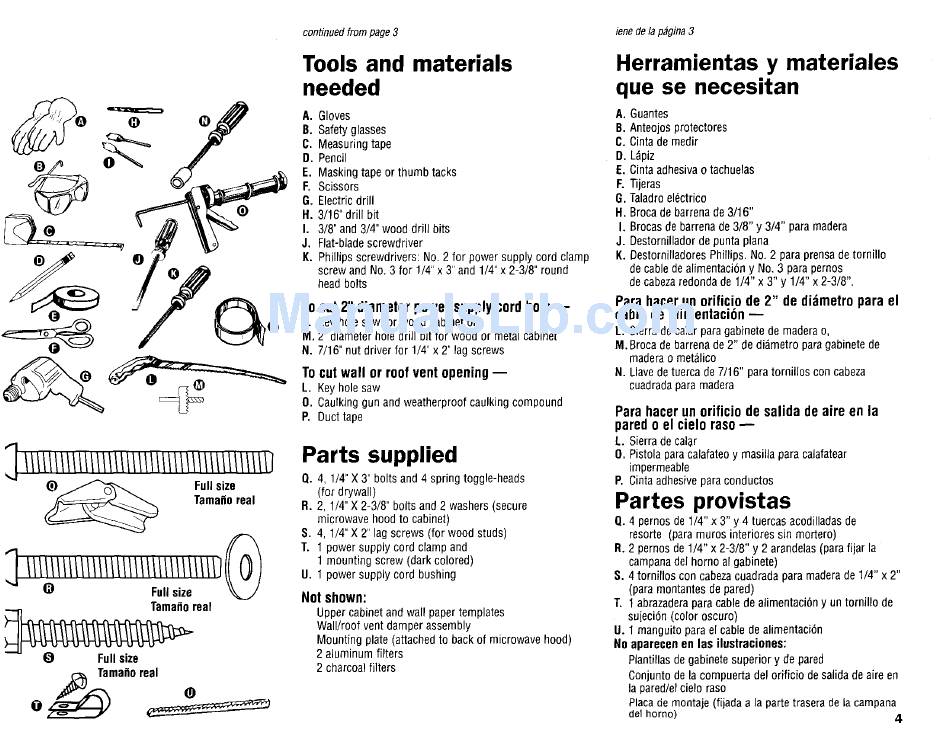 R. 2 pernos de 1/4" x 2-3/8" y 2 arandelas (para fijar la