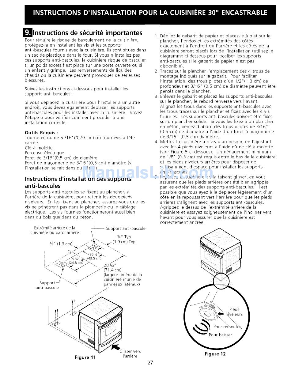 de 1/8" (0.3 cm) est requis entre le has de la cuisiniere