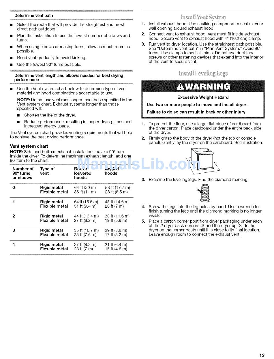 Use two or more people to move and install dryer.