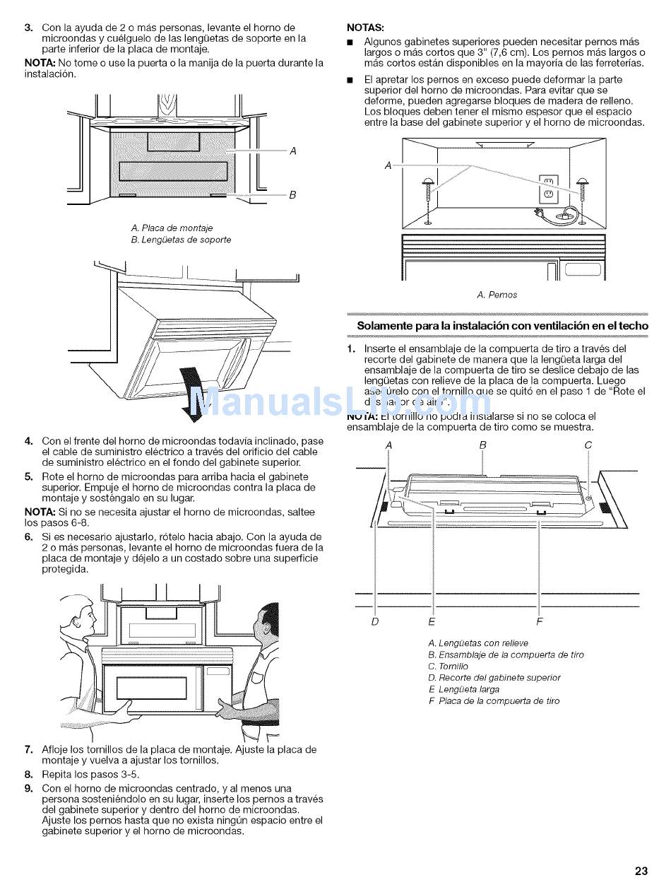 5. Rote el homo de microondas para arriba hacia el gabinete