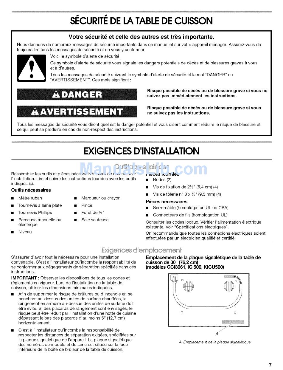Tous les messages de securite suivront le symbole d'alerte de s6curite et le mot "DANGER" ou