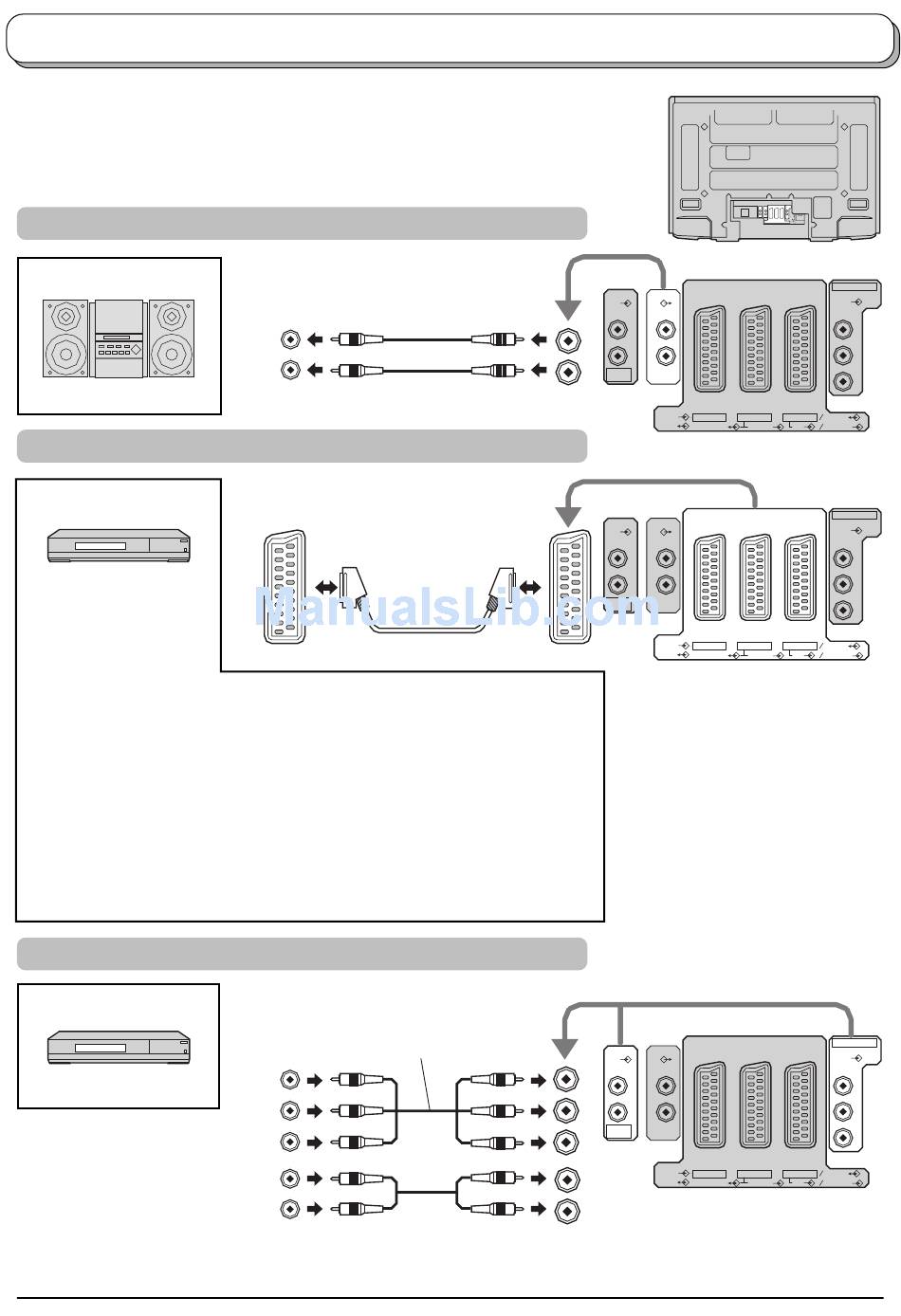 • For Scart terminal wiring and applicable component signals information see page 45.