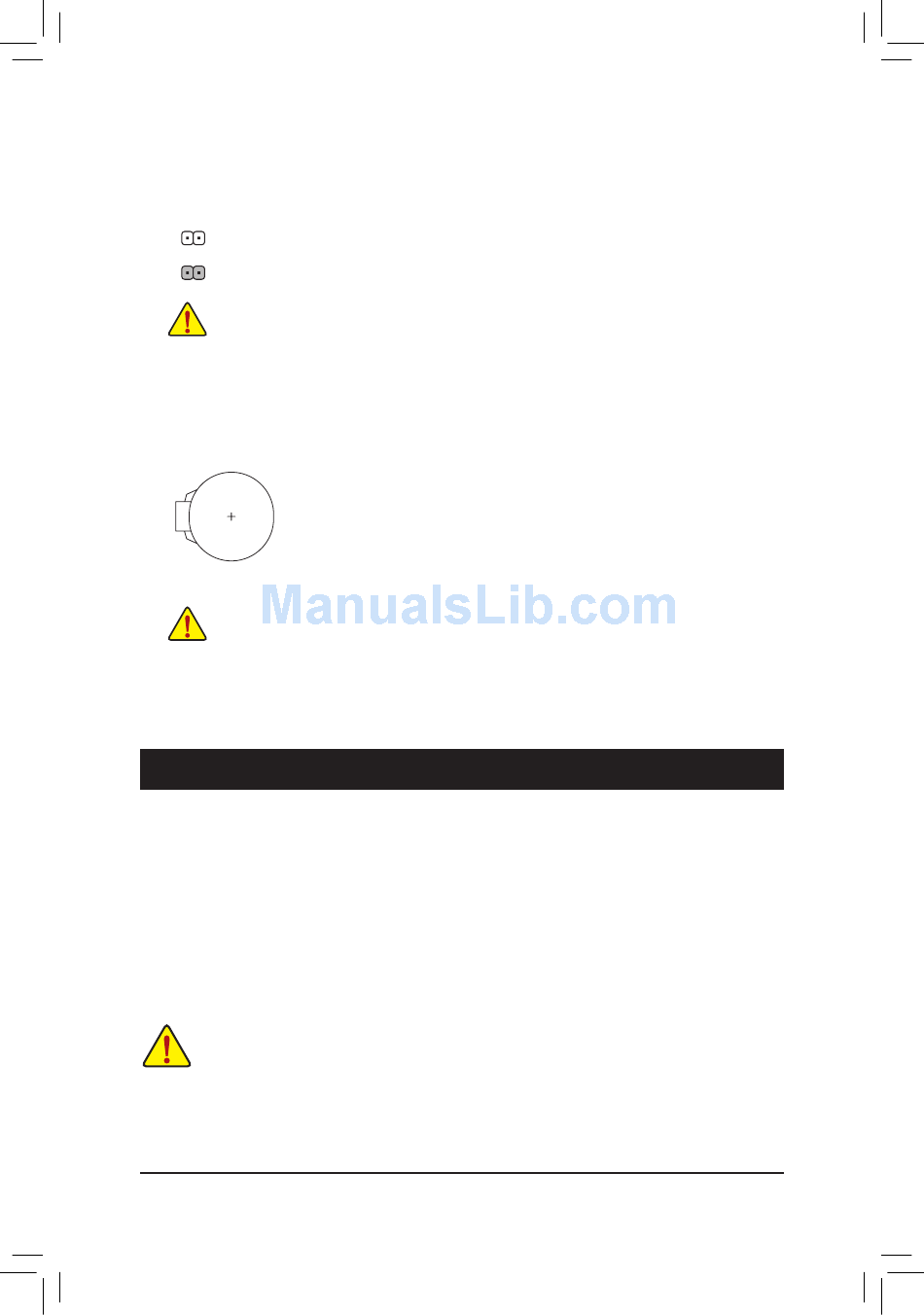 • Replace the battery with an equivalent one. Danger of explosion if the battery is replaced with an incorrect model.