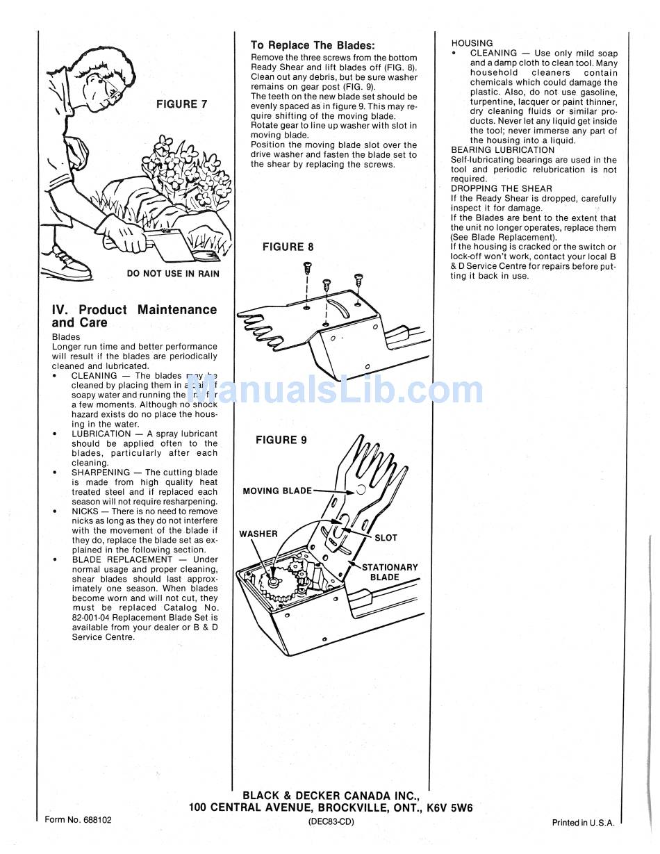 Product Maintenance And Care; Blades; Blade Replacement - Black & Decker 8273-04 Owner's Manual