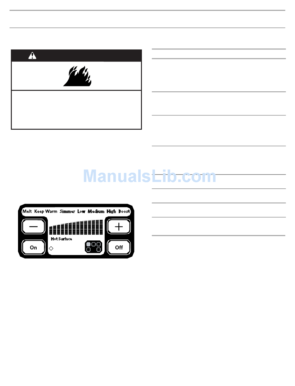 beurre, la zone de cuisson de surface peut être réglée à Melt (faire