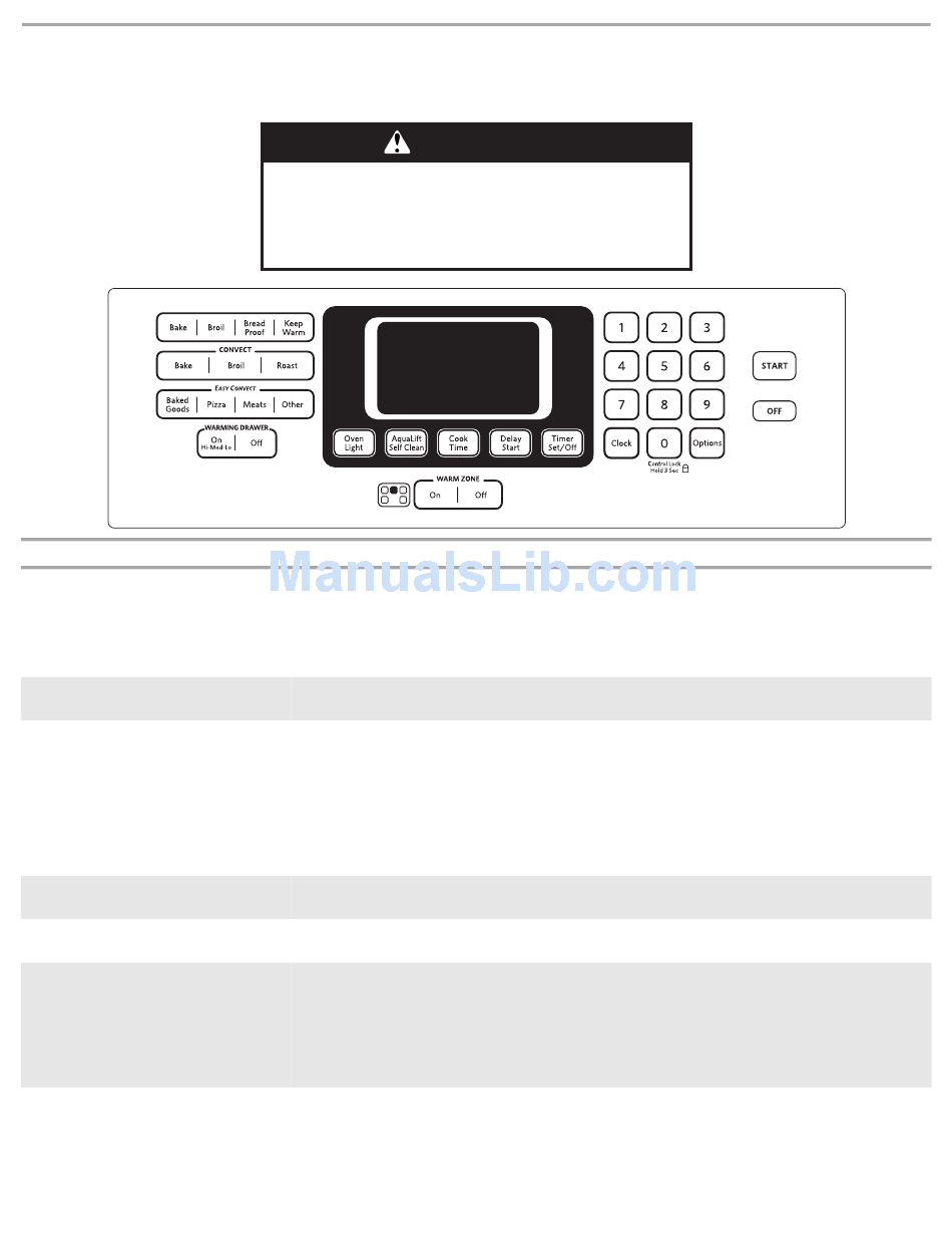 The Off keypad stops any oven function except the Clock, Timer, Control Lock and Warming