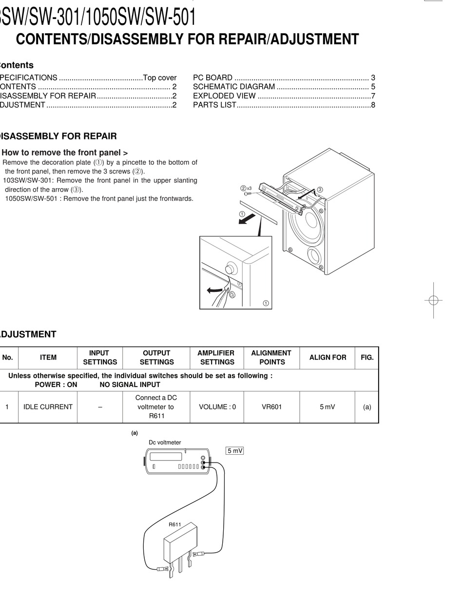CONTENTS/DISASSEMBLY FOR REPAIR/ADJUSTMENT