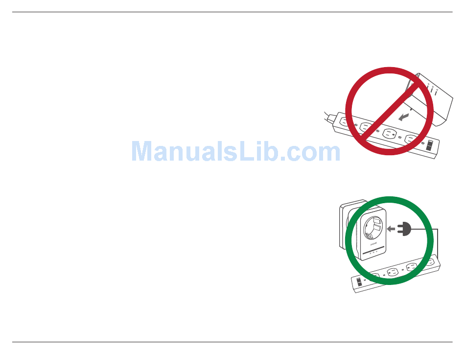 2. Do not connect the Powerline devices to an extension cord, surge protector, or