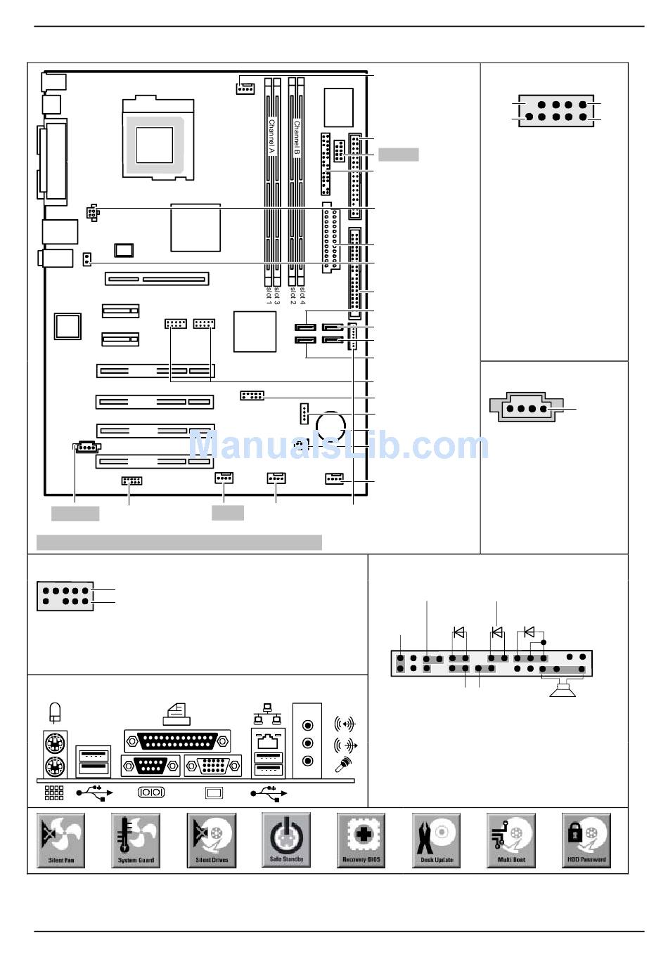 Mainboard D2156 - Internal connectors and slots