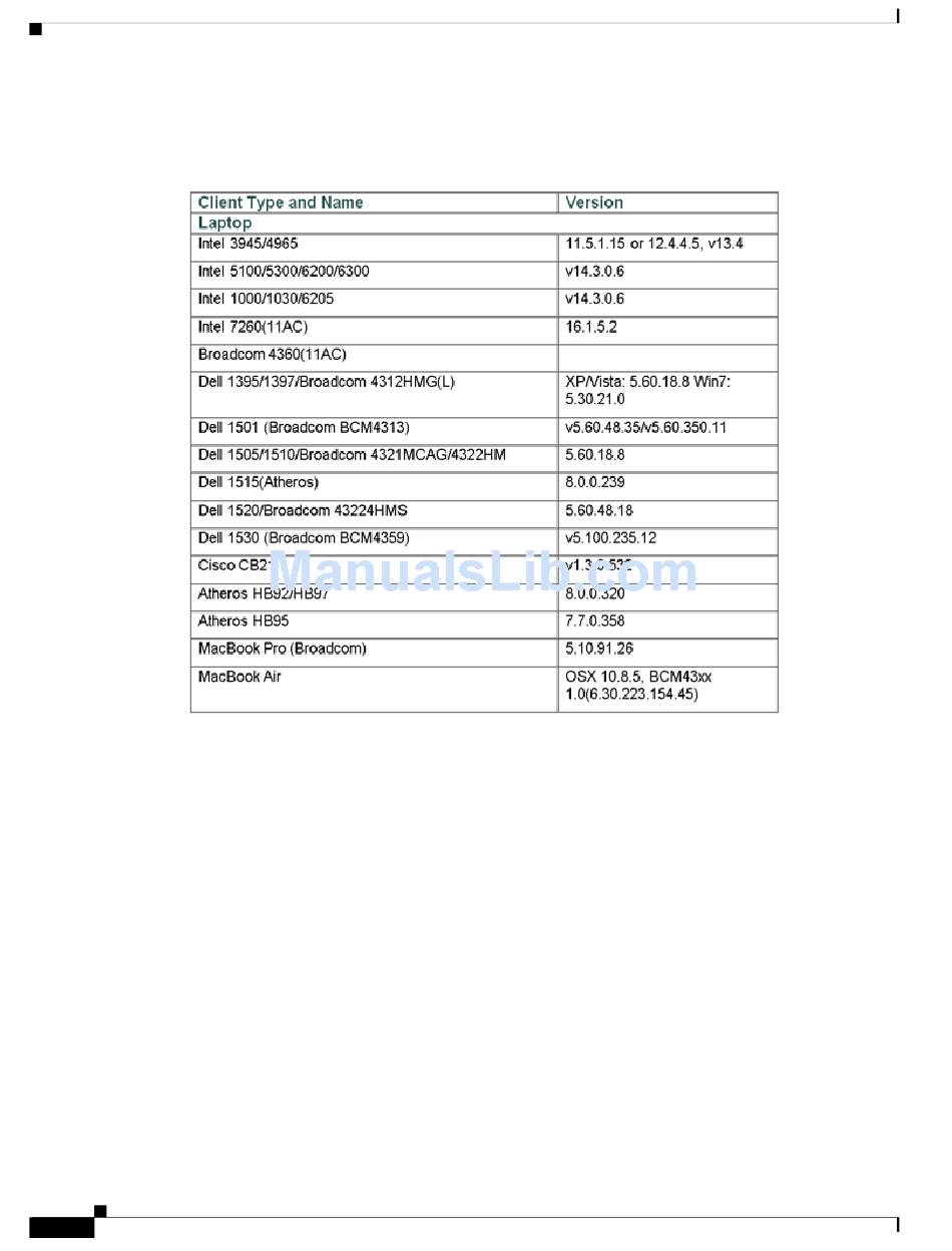 Interoperability matrix for APs, Clients and security types tested with the below clients.