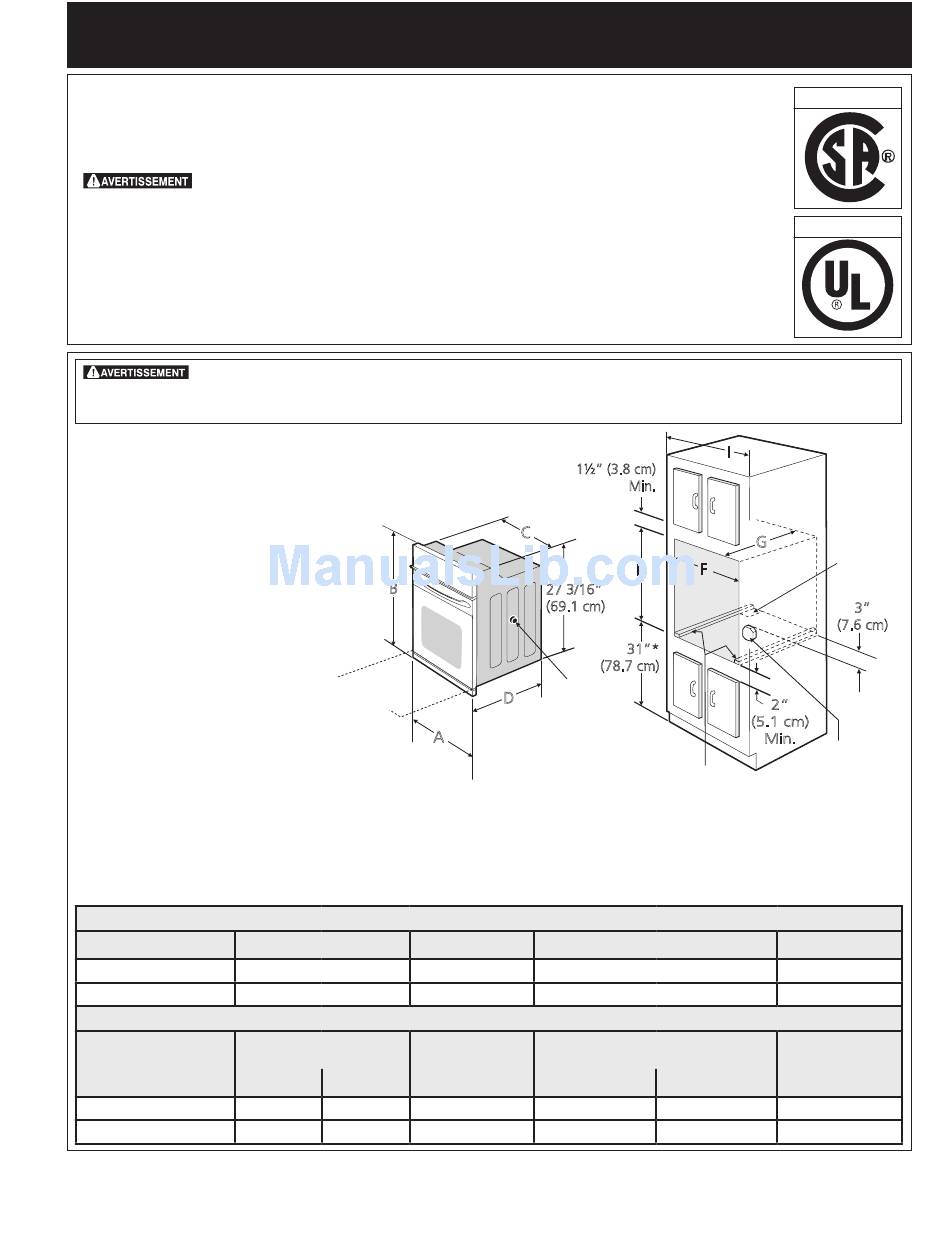 Fours encastrés simples 27" et 30" (Pour les fours encastrés doubles voir la figure 2)