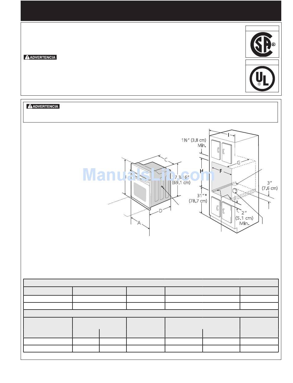 Hornos simples de Pared de 27" y 30" (Para hornos dobles, ver la Figura 2)