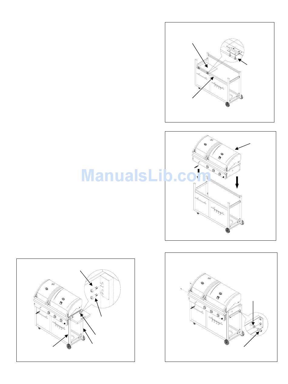 carefully place it onto the grill cart. See Fig. 20.