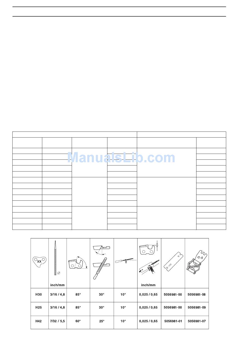 with the combinations of bars and saw chains listed below. The saw chains Husqvarna H30, H80 and H81 are also classified as a