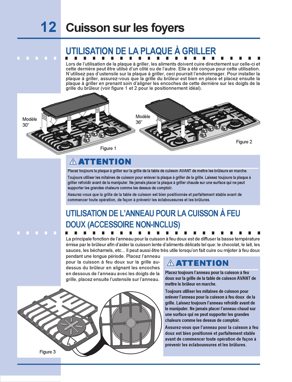 Placez toujours la plaque à griller sur la grille de la table de cuisson AVANT de mettre les brûleurs en marche.