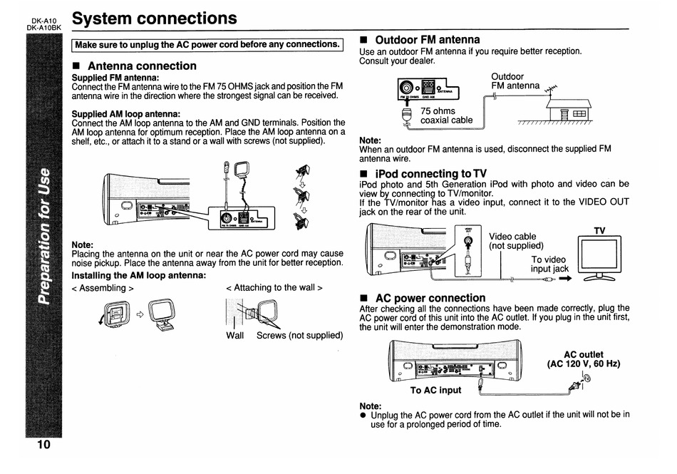AC power cord of this unit into the AC outlet. If you plug in the unit first,