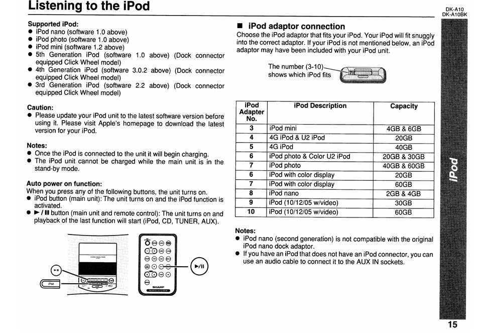 • Please update your iPod unit to the latest software version before