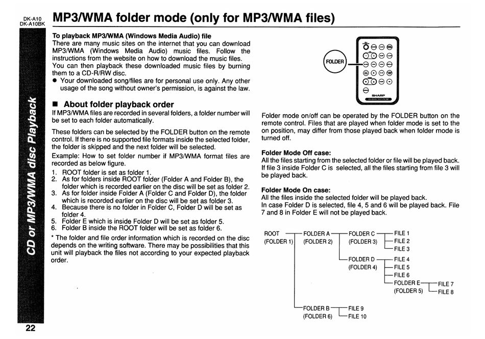 remote control. Files that are played when folder mode is set to the